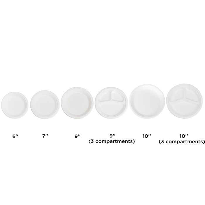 KE-BPR10-1C Karat Bagasse 10" Round Fiber Compostable Plate 500/c (Karat Item KE-BPR10) White, Size: 10"
